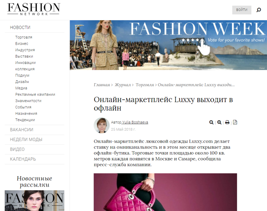 Первый и крупнейший в России маркетплейс люксовой одежды Luxxy вышел в офлайн. Компания открыла два офлайн-бутика - в Москве и Самаре. Российский стартап осваивает необычный, но растущий вторичный рынок люксового сегмента. Мы пообщались с представителями компании и узнали подробности этого рынка.