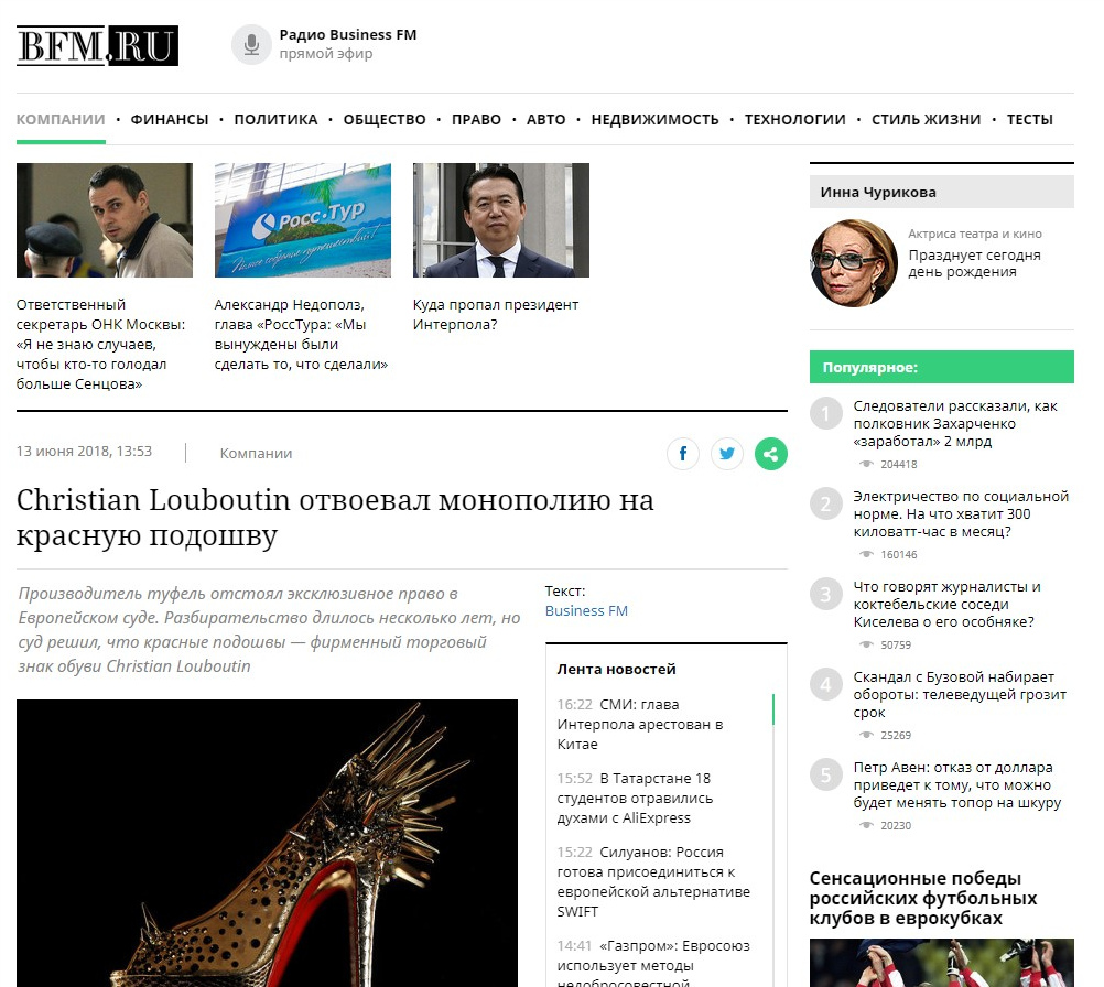 Производитель туфель отстоял эксклюзивное право в Европейском суде. Разбирательство длилось несколько лет, но суд решил, что красные подошвы — фирменный торговый знак обуви Christian Louboutin