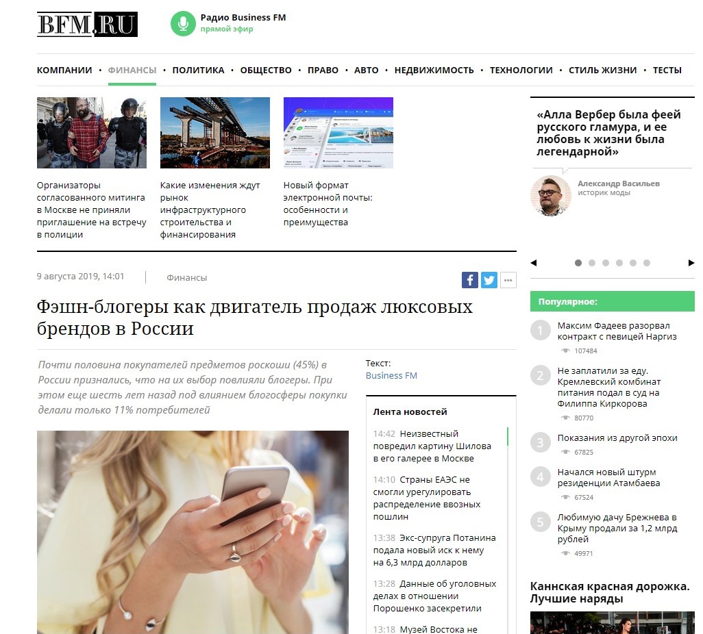 Почти половина покупателей предметов роскоши (45%) в России признались, что на их выбор повлияли блогеры. При этом еще шесть лет назад под влиянием блогосферы покупки делали только 11% потребителей