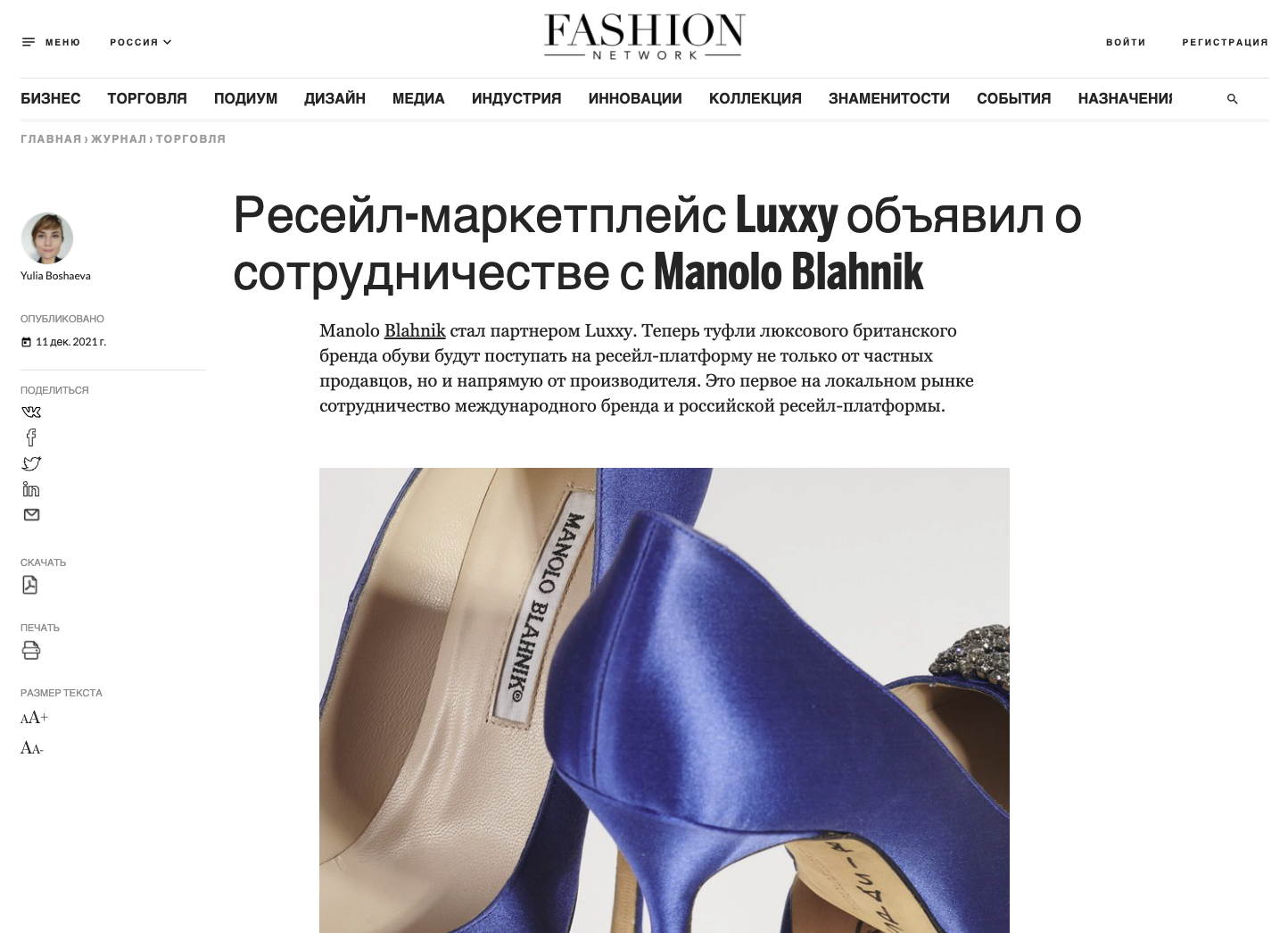 Manolo Blahnik стал партнером Luxxy. Теперь туфли люксового британского бренда обуви будут поступать на ресейл-платформу не только от частных продавцов, но и напрямую от производителя. Это первое на локальном рынке сотрудничество международного бренда и российской ресейл-платформы.